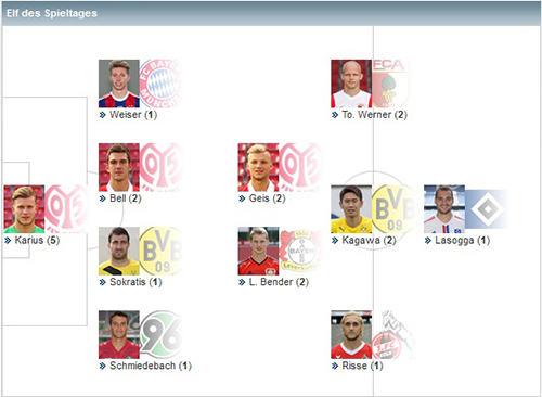 «Вольфсбург»: Бенальо, Родригес, Клозе (Кнохе, 58), Налдо, Треш, Луис Густаво, Арнольд, Калиджури, Перишич (Гилавоги, 67), де Брайне, Бендтнер.