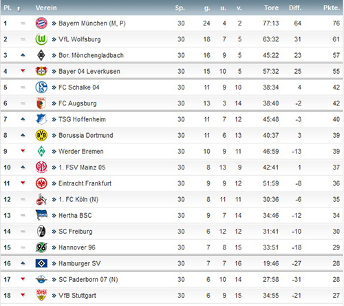 Чемпионат Германии (Бундеслига) 30-й тур