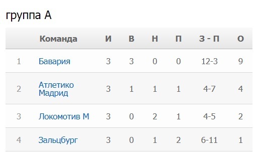 ФК Бавария МюнхенВо вторник, 3 ноября, состоялся второй матч третьего тура группового раунда Лиги чемпионов в группе A.Мюнхенская «Бавария» на выезде сумела добыть три очка в противостоянии с австрийским клубом «РБ Зальцбург».Лига чемпионов. Группа A, третий тур«РБ Зальцбург» – «Бавария» – 2:6Голы: 1:0 – 4 Бериша, 1:1 – 21, пенальти Левандовски, 1:2 – 44, автогол Кристенсен, 2:2 – 66 Окугава, 2:3 – 79 Боатенг, 2:4 – 83 Сане,2:5 – 88 Левандовски, 2:6– Эрнандес.Напомним, в первом матче этого группы «Локомотив» и «Атлетико» поделили очки.