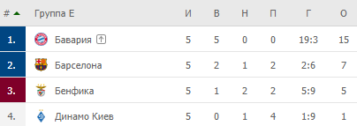 Бавария – Барселона. Прогноз и анонс на матч Лиги чемпионовТурнирная таблица группы E Лиги чемпионов